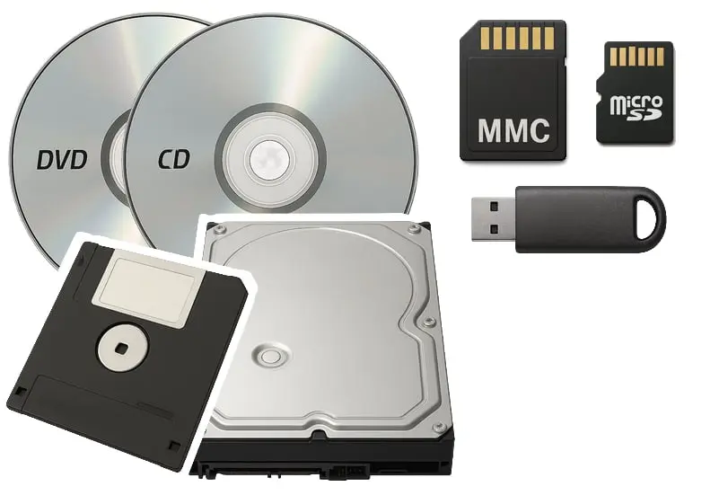 CD, DVD, MMC, SD-Karte, USB-Stick, 3,5" Diskette, Festplatte